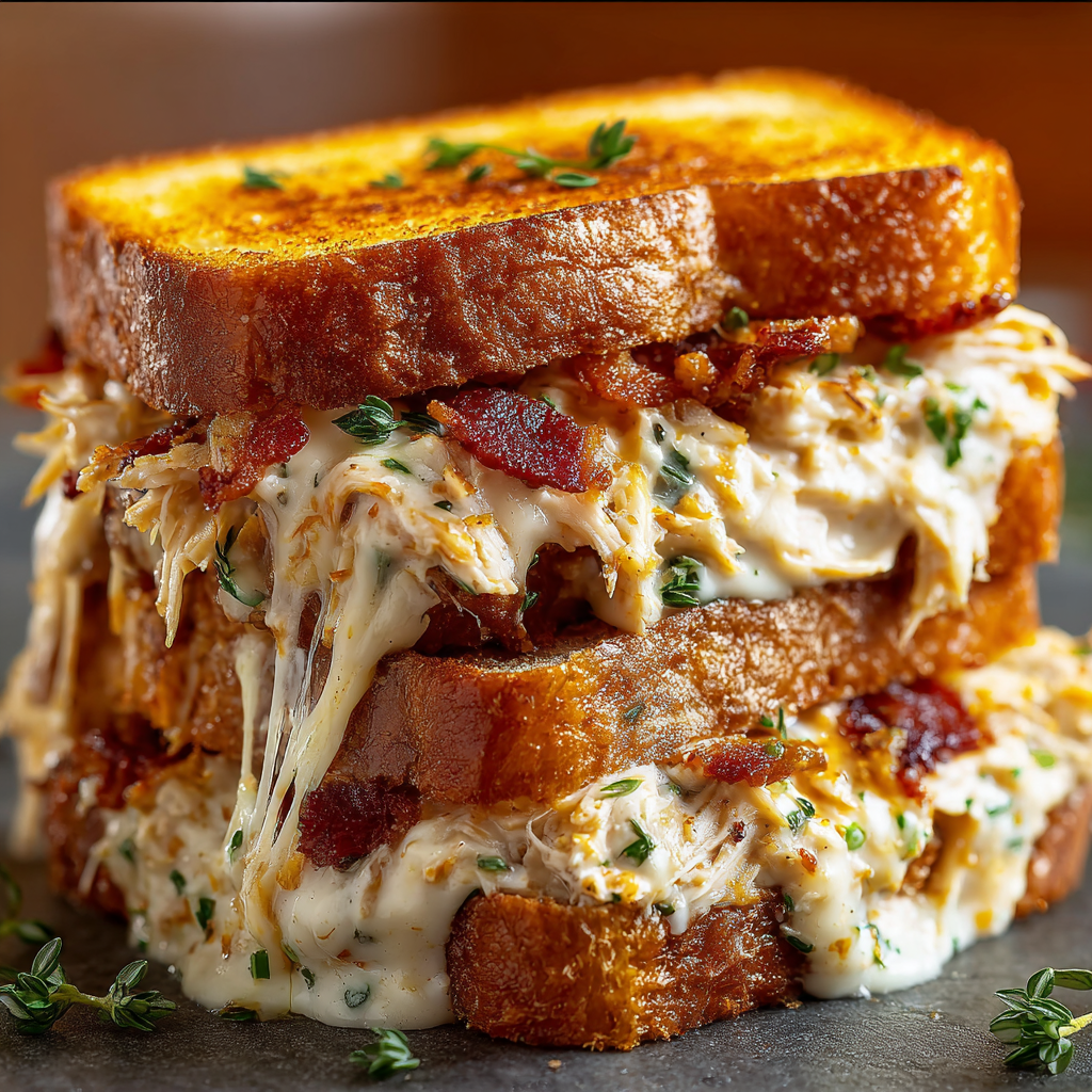 Creamy Shredded Chicken Bacon Ranch Sandwich Melt