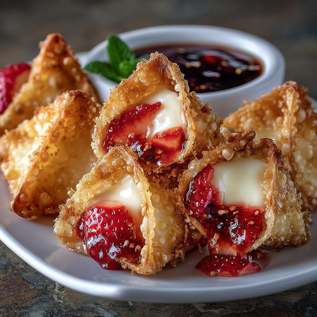 Deep-Fried Strawberry Cheesecake Wontons