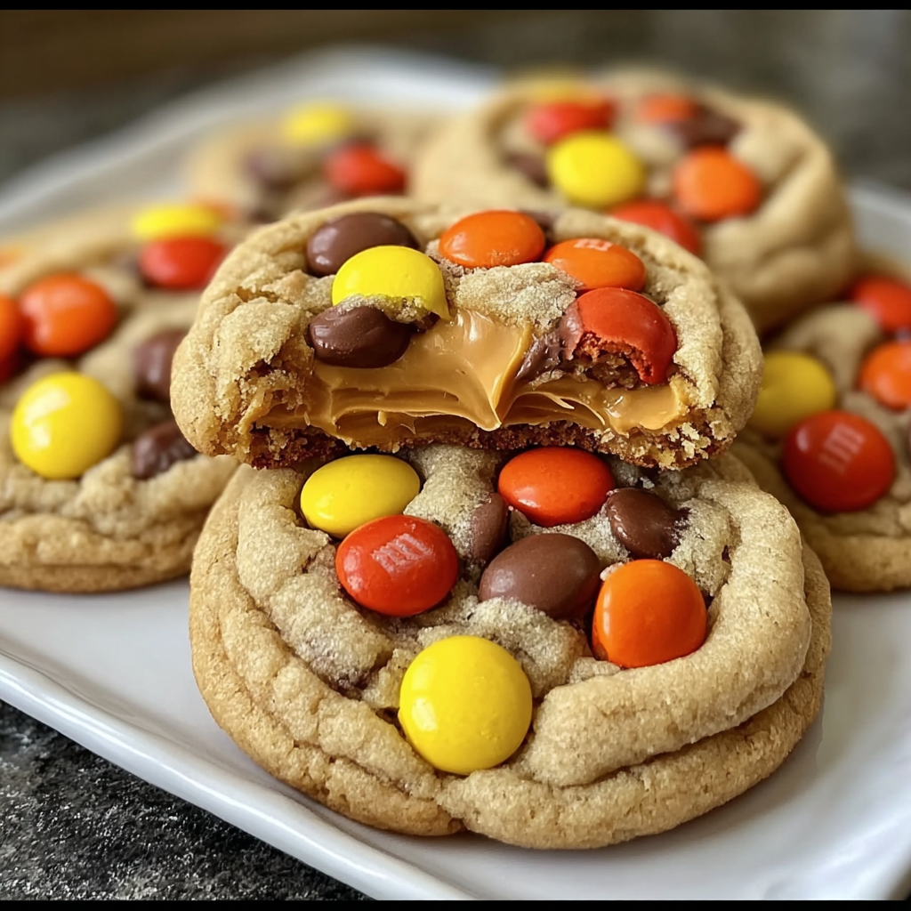 Reese’s Pieces Stuffed Chocolate Chip Cookies