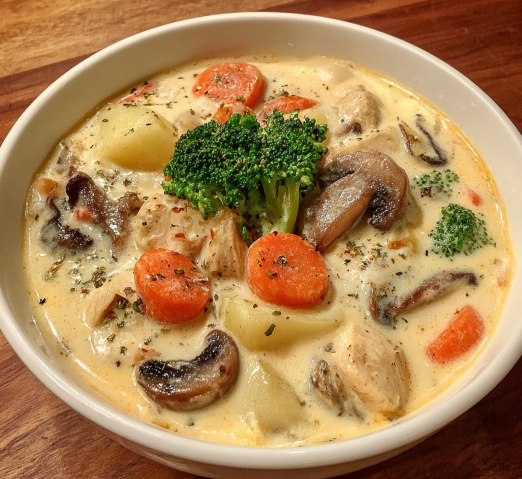 Creamy Chicken Stew with Mushrooms, Carrots, and Potatoes