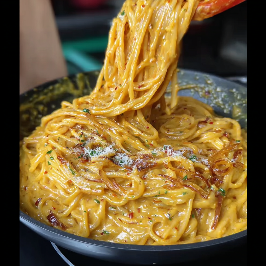 Vegan Caramelized Onion and Chili Oil Pasta